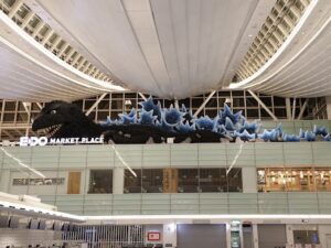 WHAT: The HANEDA GODZILLA GLOBAL PROJECT officially launched a mega-scale initiative to broadcast Japanese entertainment to the world from Haneda Airport, through the collaboration of three companies: Toho Co., Ltd., Japan Airport Terminal Co., Ltd., and Tokyo International Airport Terminal Corporation. Under the theme “Godzilla welcomes all visitors to Japan and sees them off as they depart,” a colossal Godzilla statue, approximately 40 meters long and 9 meters tall, has been revealed inside Japan’s international gateway at Haneda Airport Terminal 3.